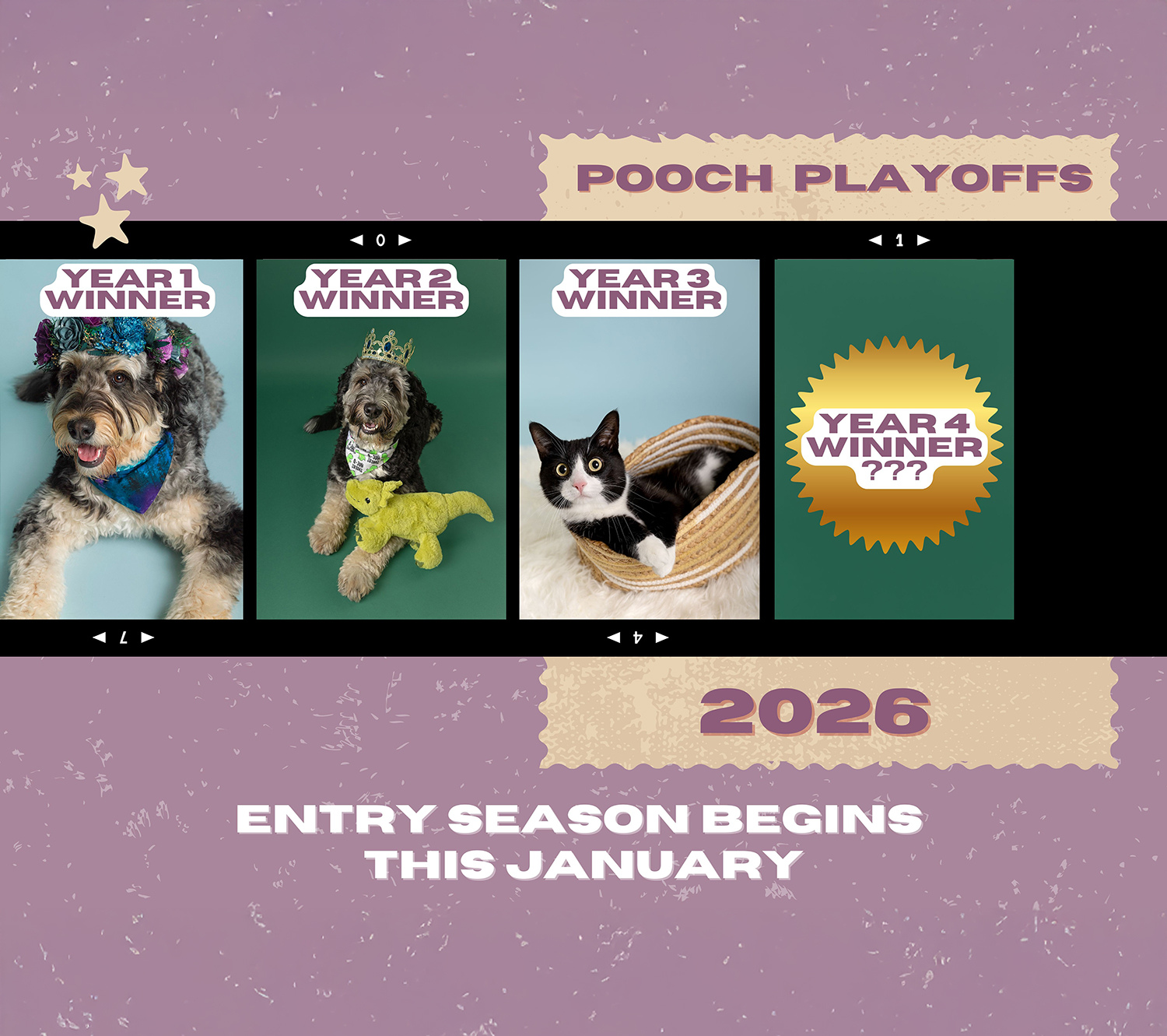 Thank you to every pet who competed and every voter who showed up to support their furry (and fluffy!) friends. I can’t wait to see what Year 4 brings for the 2026 Pooch Playoffs!